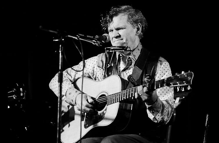 Fearlessness also infused his live performances and recordings. Whether playing fiddle tunes on his guitar at lightning speed with a flatpick or singing traditional and contemporary songs to fingerstyle accompaniment, he was a daring improviser.