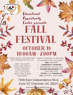 Enjoy free food, games, music, and fall activities while learning about our educational services! Meet our Educational Opportunity Center staff and discover how we can help you reach your goals—whether it’s earning your GED, returning to college, exploring new careers, or getting FAFSA support.