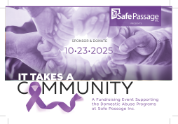 Safe Passage is excited to present "It Takes a Community" Domestic Violence Fundraiser, an event to raise awareness and funds to support our domestic violence programs. Join members of our community on October 23rd at the beautiful McBryde Hall, Winthrop University for an evening of amazing food & drinks, transformative information, live and silent auctions, and an entertaining game of heads and tails!