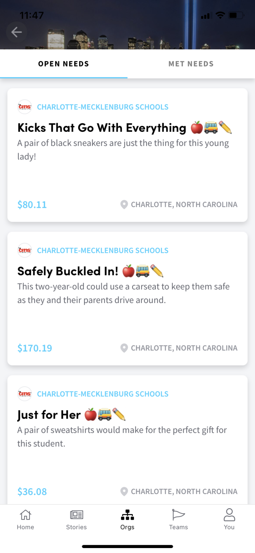 People who want to help CMS students in need can use an app called Purposity. District social workers, including those who work with students experiencing homelessness, upload individual student needs. That might be a new pair of shoes, school supplies or bedding for wherever they’re staying. Donors buy items that are delivered to the students within 48 hours.