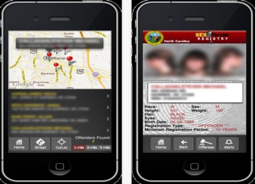 North Carolina is among the few states now offering its own mobile software for people to locate nearly 14,000 registered sex offenders across the state. We use our phones to track the movements of our friends and deals at our favorite restaurants, so really it was only a matter of time before someone came up with an app to tell you how many sex offenders live within a one-mile radius of your current location. The North Carolina Sex Offender Registry mobile app works on iPhones and iPads. The chief information officer for the North Carolina Department of Justice - Scott Glawson - says he developed the app in his free time. Attorney General Roy Cooper says people expect to have access to information on their mobile devices these days. "If you're concerned about the safety of your children, if you let them go and run around the neighborhood, you should be aware that there's a sex offender who has molested children who may live on the same block," says Cooper. Cooper notes that many sexual offenses against children are perpetrated by friends and family, rather than strangers, but he says the mobile app is "one more weapon" to protect your kids. While the idea of checking your phone for registered sex offenders in every neighborhood you visit may seem a little over-the-top, it's a concept that resonates with mothers like Katie Barnes Harding. She has two small children and blogs at CharlotteMomFavorites.com. "I've often wondered if I'm at a safe location with my friends and my kids when they're on play dates and such," says Harding "I think (the app) would be a really helpful tool if I was looking at buying a house. It's something I could use to make sure it would be a safe neighborhood for my family." Harding also admits it could be easy to get paranoid with the information always at her fingertips, but says she'd rather be safe than sorry. Jennifer Bullock from TheCharlotteMoms.com blog says the photos and criminal history of offenders are helpful, but she wishes the app offered an explanation of legal terms in the registry so she had better sense of the nature of an offender's crime. The free North Carolina sex offender registry app is now on iTunes. The Attorney General's office hopes to develop a version for Droid devices in the future.