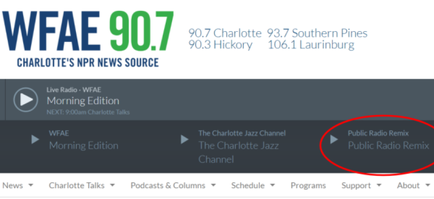 Once expanded, click the Public Radio Remix stream to listen to regular programming.