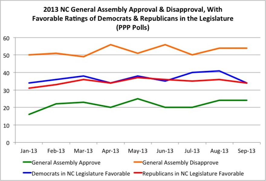 About one-quarter of respondents to Public Policy Polling said they approved of the legislature last year, and nearly half disapproved.