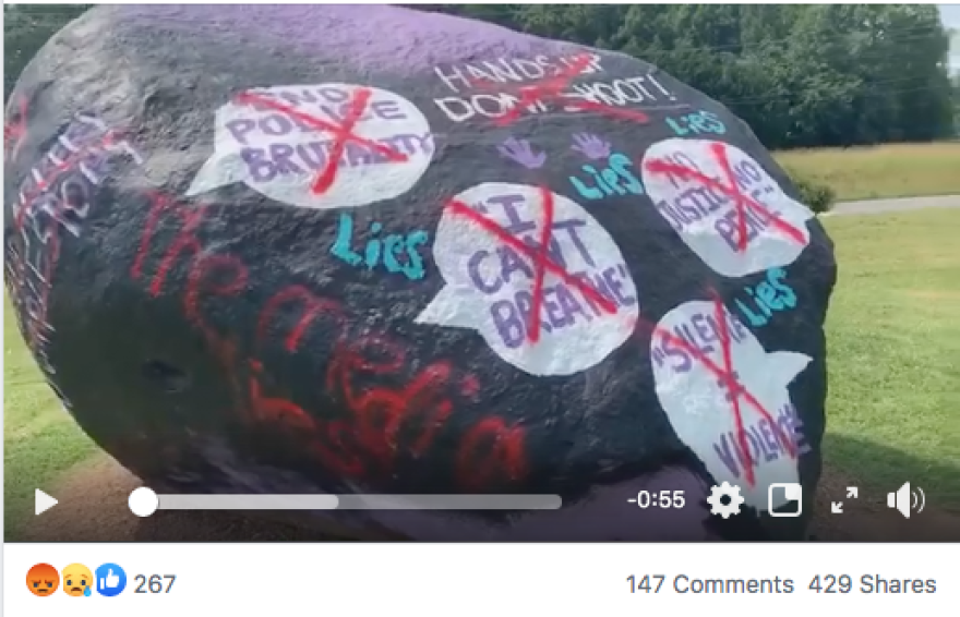 A video circulating on social media Sunday shows messages on the rock at Charlotte's Ardrey Kell High supporting Black Lives Matter protests defaced and crossed out.