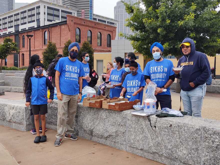 Pawanjit Singh with the Sikh Coalition said the group brought dinner to share because "we believe in equality."