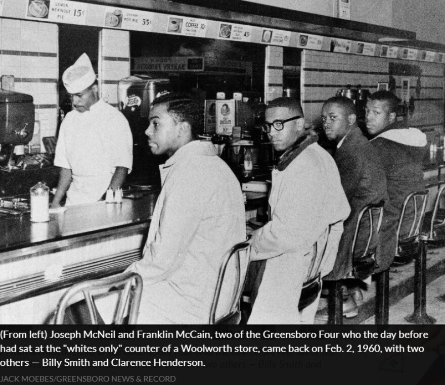 Feb. 1 marks the start of Black History Month, but it’s also the 60th anniversary of the sit-in of four African American students from North Carolina A&T State University at a segregated Woolworth’s lunch counter in Greensboro.