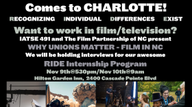 The IATSE4 491 RIDE Internship Program is going statewide and Charlotte is our first stop! Want to learn about working in the movies while getting paid? Come see us.