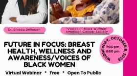 • In honor of Breast Cancer Awareness Month, Dr. Erkeda DeRouen will lead an empowering presentation on breast health, offering vital insights every woman should know. In addition, representatives from the American Cancer Society will share a compelling presentation on "Voices of Black Women"-a powerful initiative addressing the disparities in health education, cancer risks, and health outcomes affecting Black women between the ages of 25 and 55.