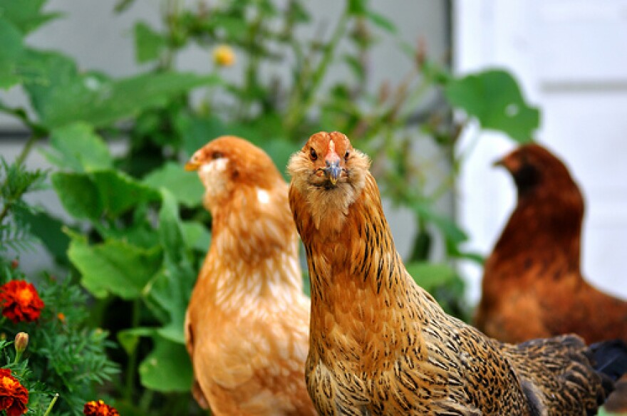 “Chickens,” he squawked, an urbanite at heart. “There’s an ordinance against those.”